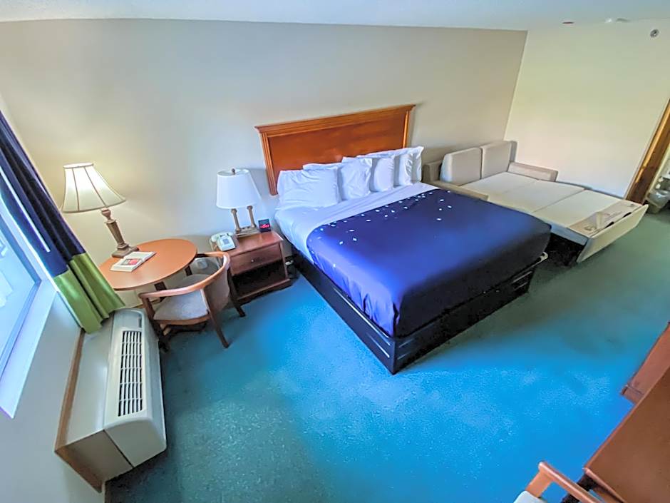 Offering a flat-screen TV with cable channels, this room includes a microwave and refrigerator.